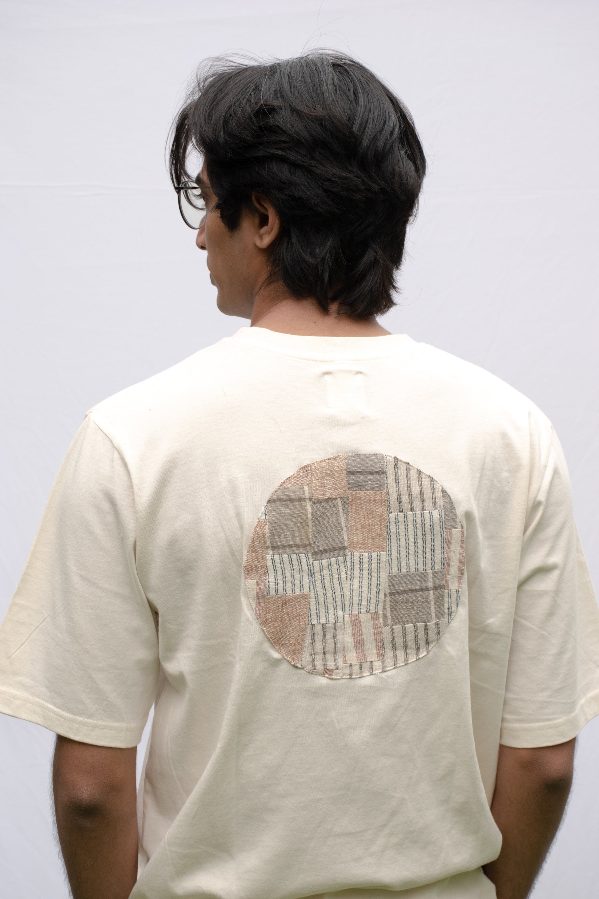 Ecru oversized t-shirt with circle patchwork